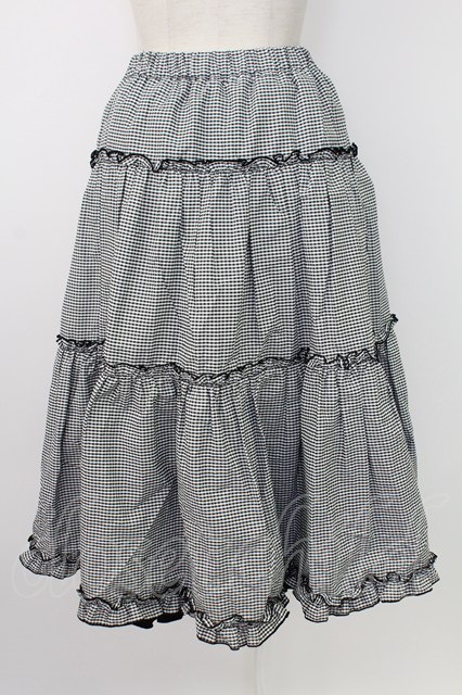 m petit by misako / NINA'Sギャザースカート S 黒X白 T-25-12-19-014-LO-SK-SA-ZT