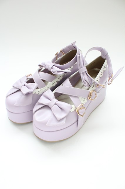 axes femme kawaii / リボンスカラップ配色シューズ L パープルX白 T-25-12-19-049-AX-SH-SA-ZT [2100060000040542-T-25-12-19-049-AX-SH-SA-ZT]