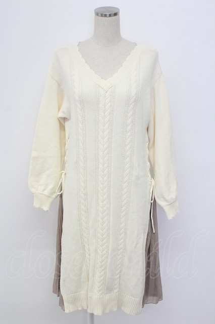 axes femme / サイドプリーツニットワンピース M ホワイト T-25-12-18-015-AX-OP-SA-ZT