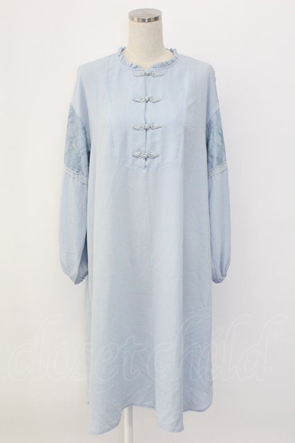 axes femme / 袖刺繍チャイナ釦シャツワンピース M サックス T-25-12-18-022-AX-OP-SA-ZT