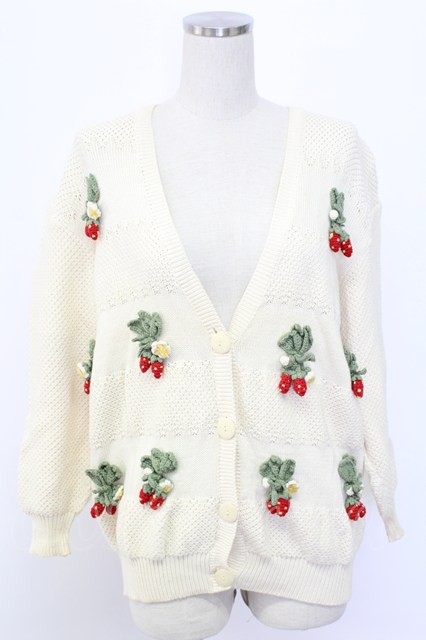 PINK HOUSE / 苺ニットモチーフ付きVネックカーディガン アイボリー T-25-12-18-040-LO-TO-SA-ZT [2100060000026069-T-25-12-18-040-LO-TO-SA-ZT]