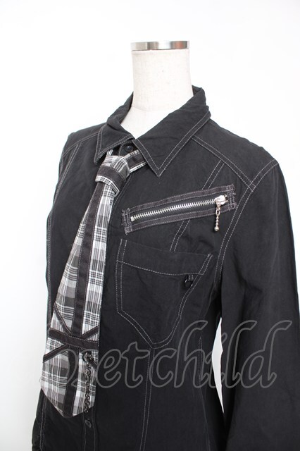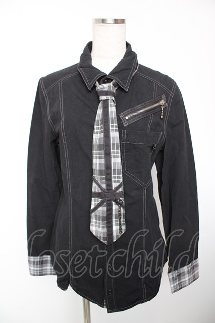 ALGONQUINS / チェックネクタイZIPブラウス ユニセックス 黒 Y-25-12-19-035-AL-BL-SZ-ZY [2100070000056798-Y-25-12-19-035-AL-BL-SZ-ZY]
