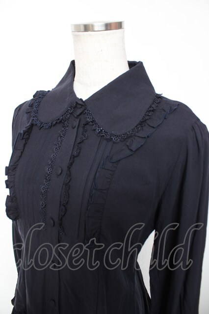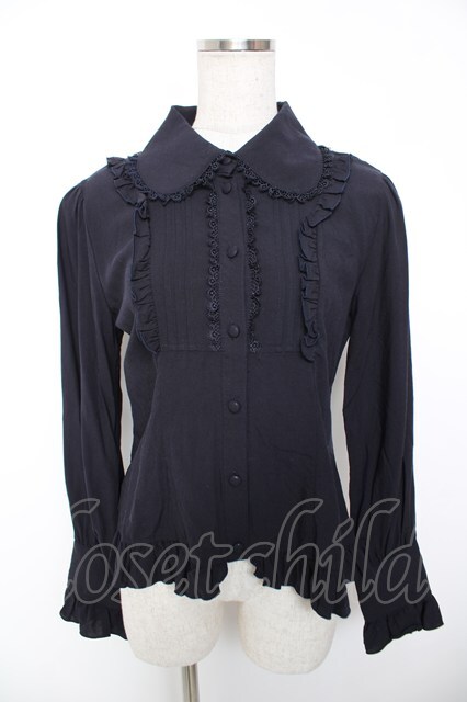 ATELIER PIERROT / ピンタック丸襟ブラウス 紺 Y-25-12-19-037-EL-BL-SZ-ZY