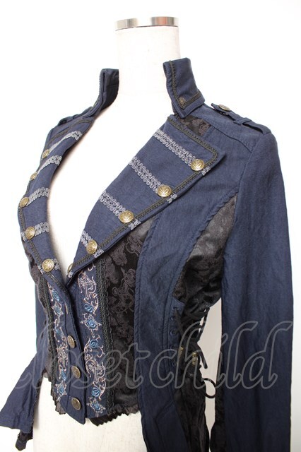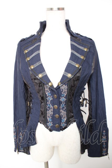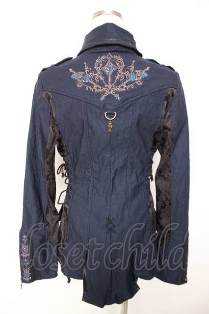 Ozz oneste / 薔薇刺繍ジャケット 紺 Y-25-12-19-044-OO-JA-SZ-ZY