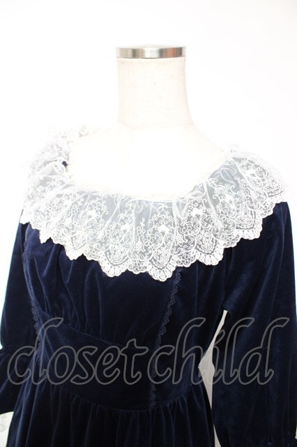 axes femme / パゴタ袖ベロアワンピース F 紺 Y-25-12-19-075-AX-OP-SZ-ZY