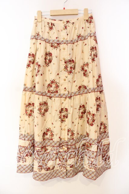 KETTY / フラワーリースプリントスカート アイボリー×アカ O-25-12-17-019-EL-SK-IG-OS [2100080000068405-O-25-12-17-019-EL-SK-IG-OS]