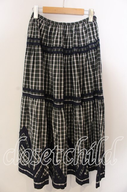 KETTY / タータンチェック三角スカート ネイビー×グリーン O-25-12-17-031-EL-SK-IG-OS