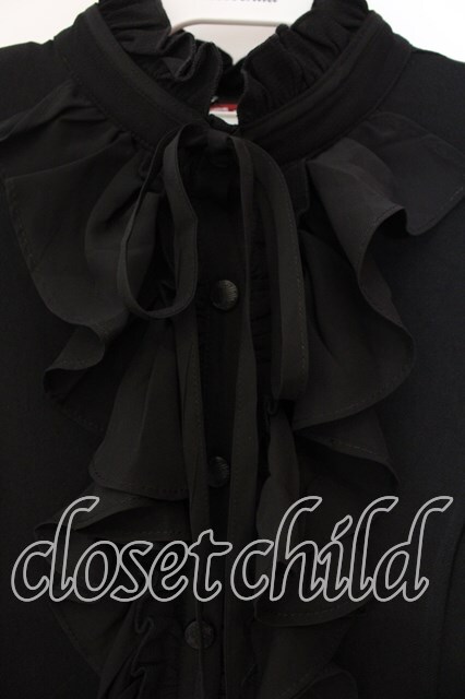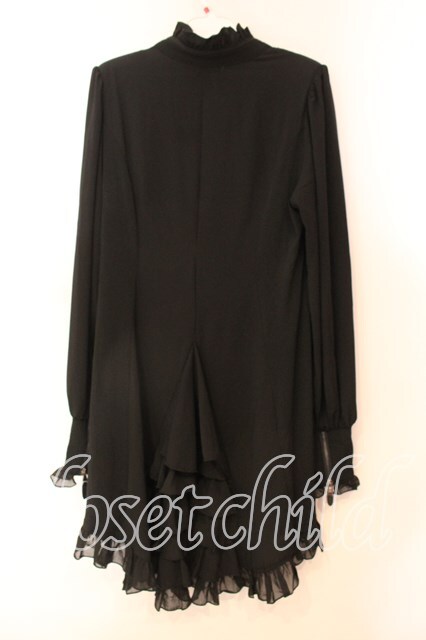 Qutie Frash / 後ろロングフリルブラウス ブラック O-25-12-17-007-QU-BL-YM-OS [2100080000068423-O-25-12-17-007-QU-BL-YM-OS]