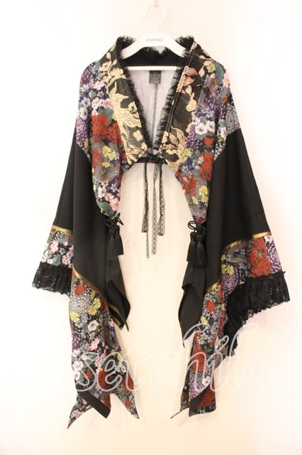 Qutie Frash / 2025プレミアムセット【華龍】着物カーデ ブラック×マルチ O-25-12-17-009-QU-SK-IG-OS [2100080000068425-O-25-12-17-009-QU-SK-IG-OS]
