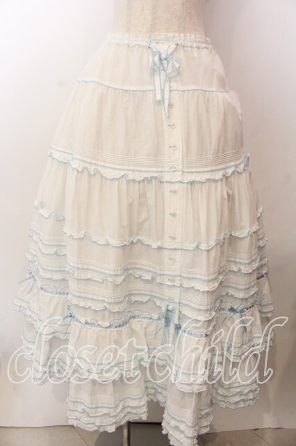 PINK HOUSE / ローンフリルティアードスカート シロ×サックス O-25-12-17-058-LO-SK-IG-OS [2100080000068575-O-25-12-17-058-LO-SK-IG-OS]