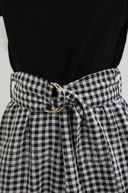 axes femme / ベルト付ドッキングワンピース M ブラック/ギンガム H-25-12-23-1014-AX-OP-NS-ZH