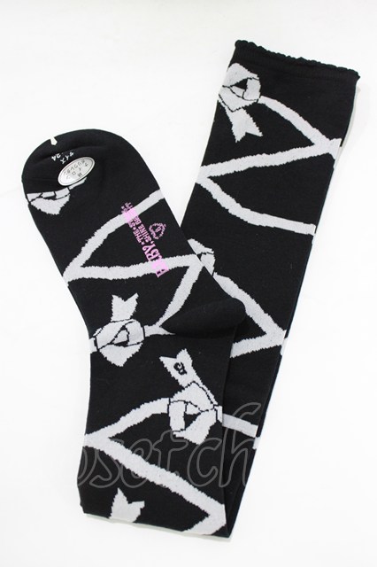 BABY,THE STARS SHINE BRIGHT / レースアップリボン柄オーバーニーソックス ブラック H-25-12-23-1069-BA-ZA-NS-ZH [2100030000081296-H-25-12-23-1069-BA-ZA-NS-ZH]