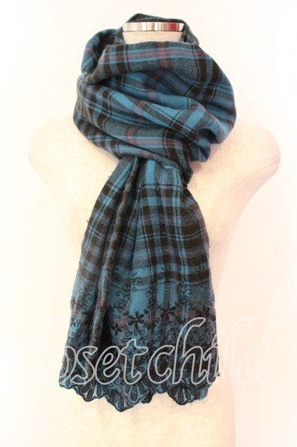 axes femme / スカラップ刺繍ストール ブルー O-25-12-18-028-AX-ZA-IG-ZT1219Z