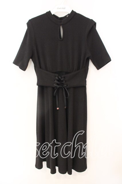 EATME / FRONTレースアップデザインリブワンピース クロ O-25-12-18-011-LO-OP-IG-OS