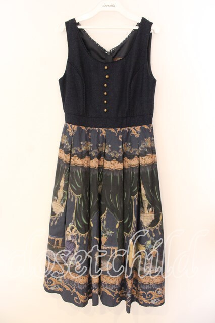 axes femme NOSTALGIE / 絵画柄ジャンドレ ネイビー O-25-12-18-067-AX-OP-IG-OS