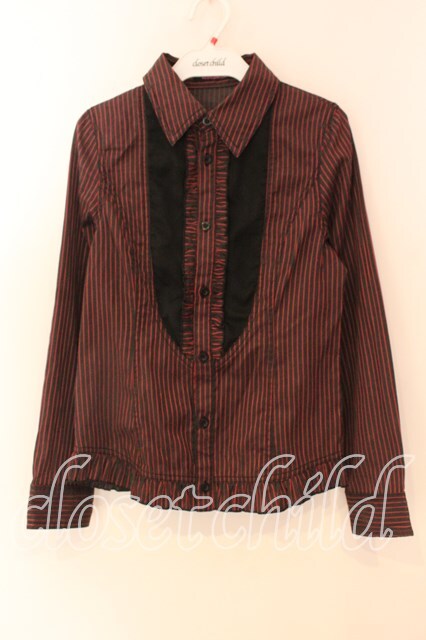 ALGONQUINS / ストライプフリルブラウス レッド×ブラック O-25-12-18-051-AL-BL-IG-OS