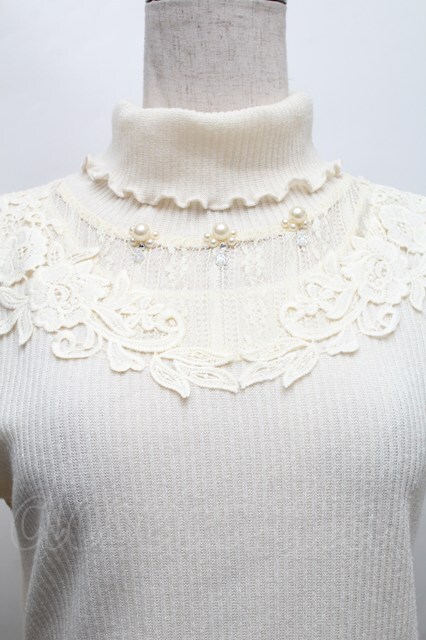 axes femme / パール付きハイネックニット オフ S-25-12-17-018-AX-TO-HR-ZS