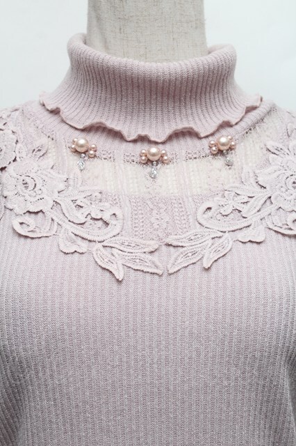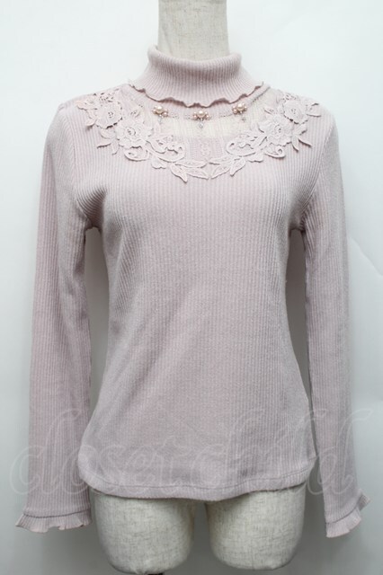 axes femme / パール付きハイネックニット ピンク S-25-12-17-020-AX-TO-HR-ZS