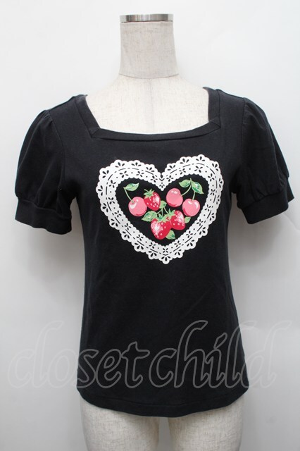 Emily Temple cute / ベリープリントカットソー 黒 S-25-12-17-024-ET-TO-AS-ZS [2100020000035224-S-25-12-17-024-ET-TO-AS-ZS]