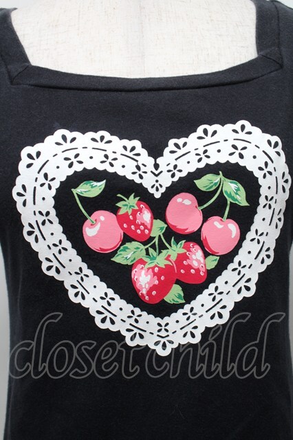 Emily Temple cute / ベリープリントカットソー 黒 S-25-12-17-024-ET-TO-AS-ZS