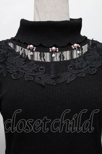axes femme / パール付きハイネックニット 黒 S-25-12-17-025-AX-TO-HR-ZS