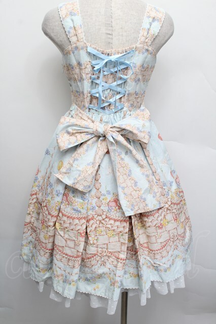 BABY,THE STARS SHINE BRIGHT / Icing Dancing Cake柄クリームジャンパースカート サックス S-25-12-17-048-BA-OP-AS-ZS [2100020000035264-S-25-12-17-048-BA-OP-AS-ZS]
