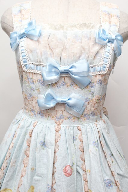 BABY,THE STARS SHINE BRIGHT / Icing Dancing Cake柄クリームジャンパースカート サックス S-25-12-17-048-BA-OP-AS-ZS