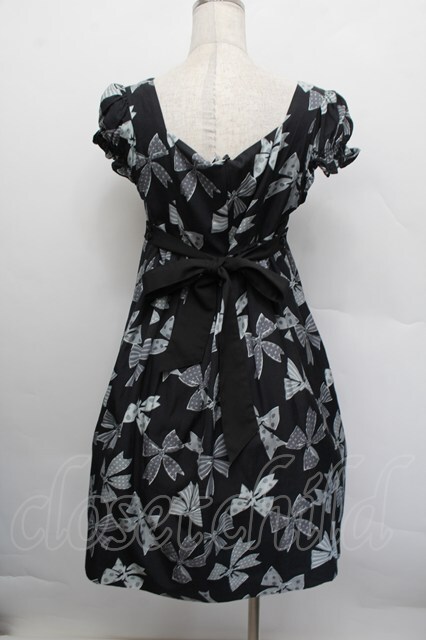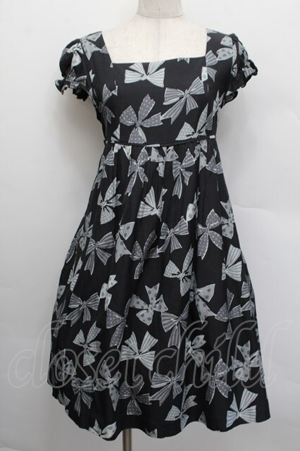 Jane Marple / Ribbons go aroundワンピース 黒xグレー S-25-12-17-056-JM-OP-AS-ZS