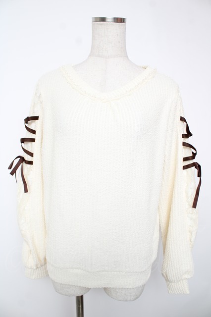 axes femme / 袖レースアップデザインプルオーバー F 生成り Y-25-12-22-074-AX-TO-SZ-ZY