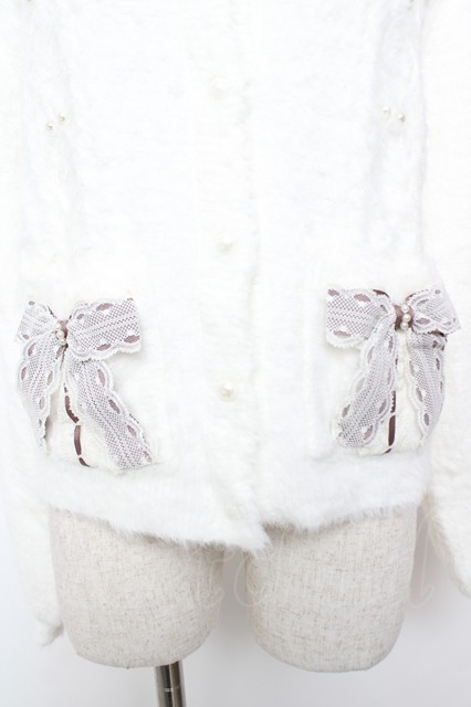 axes femme / リボン付フェザーニットカーディガン F 白 Y-25-12-22-090-AX-TO-SZ-ZY