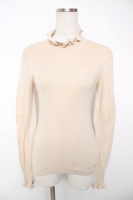 Jane Marple Dans Le Salon / レーストリミングのタートルセーター M アイボリー Y-25-12-22-109-JM-TO-SZ-ZY