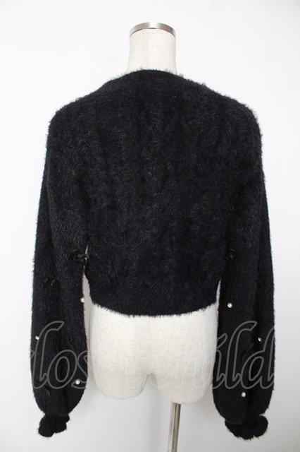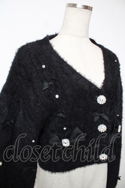 NOEMIE / メニーリボンビジューフわふわシャギーカーデ M 黒 Y-25-12-22-113-LO-TO-SZ-ZY