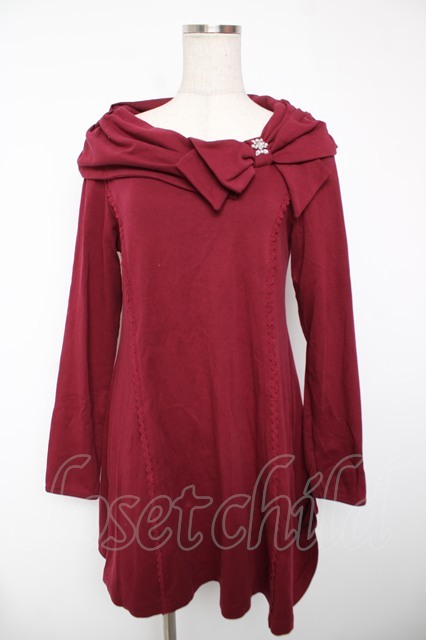axes femme / リボンカラーチュニック M ワイン Y-25-12-22-133-AX-OP-SZ-ZY