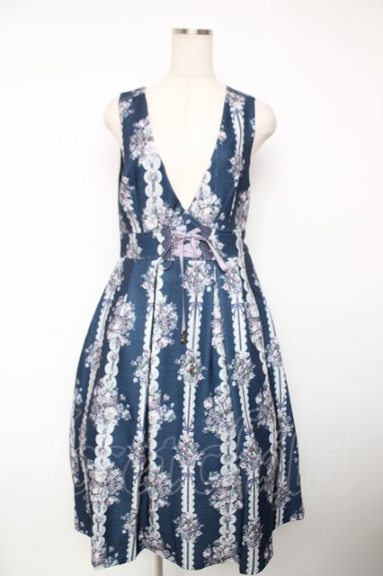 axes femme / ローズリボン柄ジャンスカ F 紺 Y-25-12-22-136-AX-OP-SZ-ZY