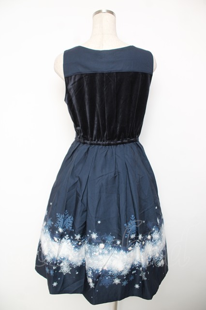 axes femme POETIQUE / スノークリスタルノースリワンピース M 紺 Y-25-12-22-139-AX-OP-SZ-ZY