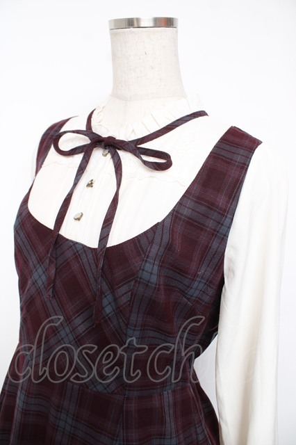 axes femme / チェック柄ドッキングワンピース F ワイン Y-25-12-22-144-AX-OP-SZ-ZY