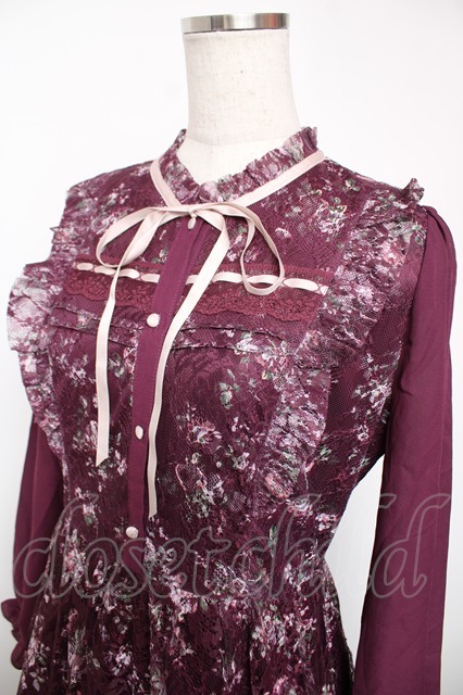 axes femme / フラワープリントレーシーワンピース M ワイン Y-25-12-22-146-AX-OP-SZ-ZY