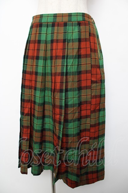 Jane Marple Dans Le Salon / ウールタータンタックスカート M グリーン Y-25-12-22-183-JM-PA-SZ-ZY