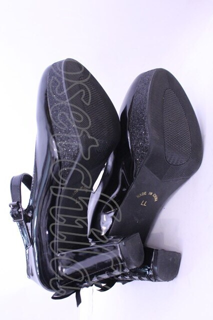 YOSUKE / レースアップデザインヒールパンプス LL ブラック O-25-12-18-1089-PU-SH-OW-OS [2100080000067119-O-25-12-18-1089-PU-SH-OW-OS]
