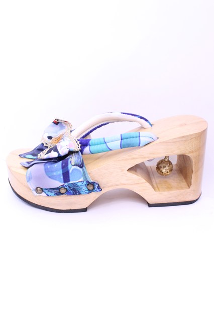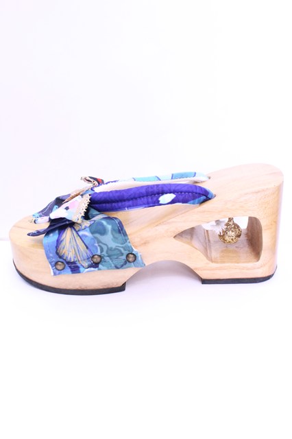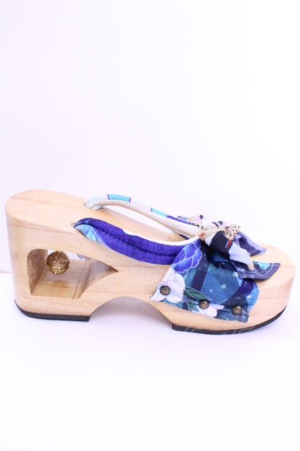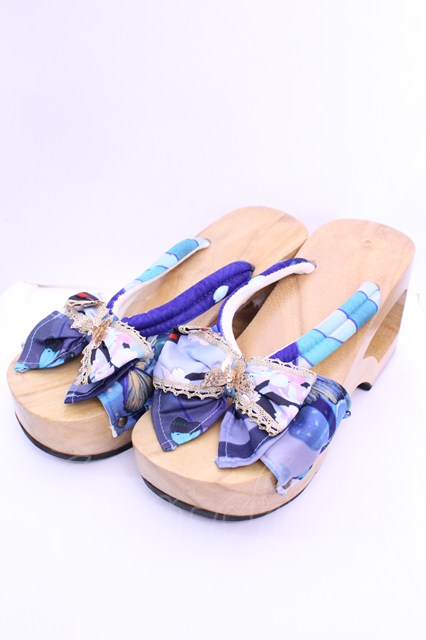 Empty wardrobe / 和柄下駄風サンダル L ナチュラル×ブルー O-25-12-18-1033-LO-SH-OW-OS