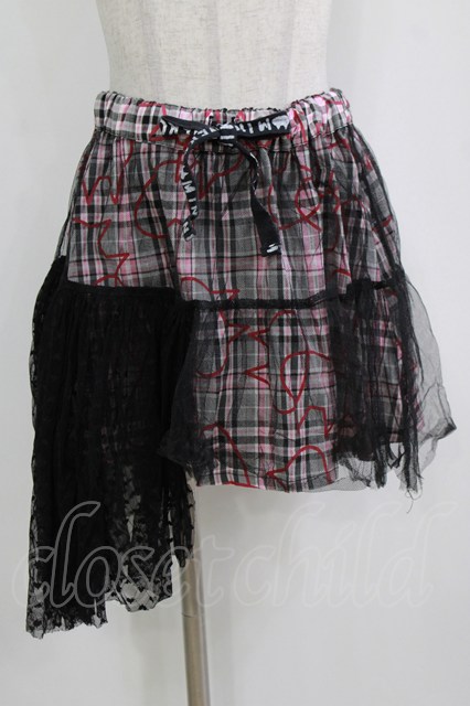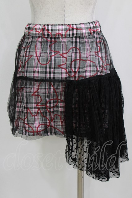 MINT NeKO / バブルネコチェックチュールレイヤードスカート ピンク×ブラック H-25-12-24-1023-HN-SK-KB-ZH [2100030000081455-H-25-12-24-1023-HN-SK-KB-ZH]