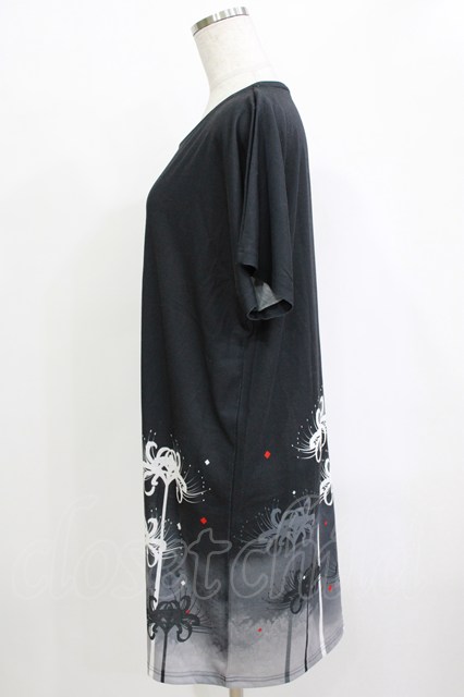 curiosite / 彼岸花Tシャツワンピース ブラック H-25-12-24-1045-EL-OP-KB-ZT246