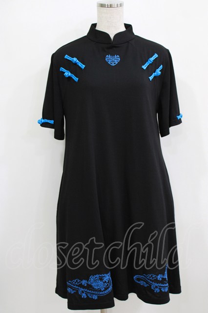 LISTEN FLAVOR / ドラゴンシュアンシーチャイナワンピ ブラック×ブルー H-25-12-24-1013-PU-OP-KB-ZH