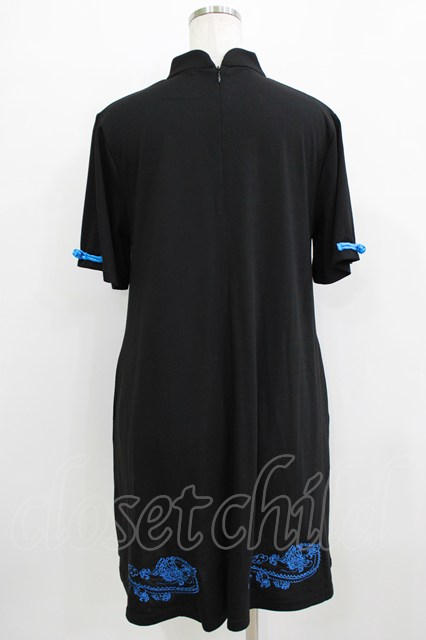 LISTEN FLAVOR / ドラゴンシュアンシーチャイナワンピ ブラック×ブルー H-25-12-24-1013-PU-OP-KB-ZH [2100030000081461-H-25-12-24-1013-PU-OP-KB-ZH]