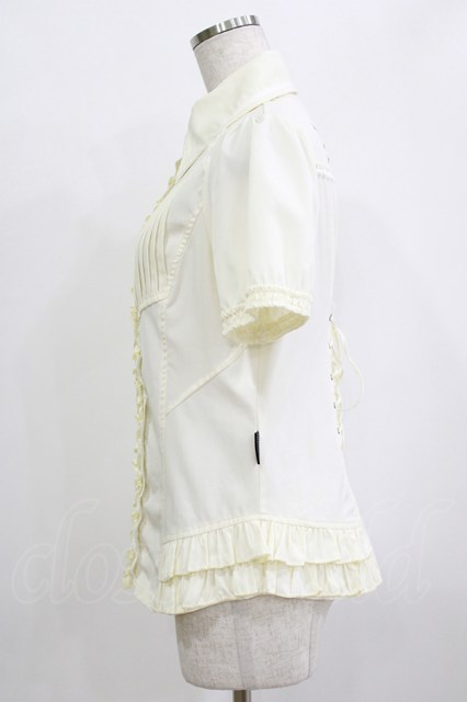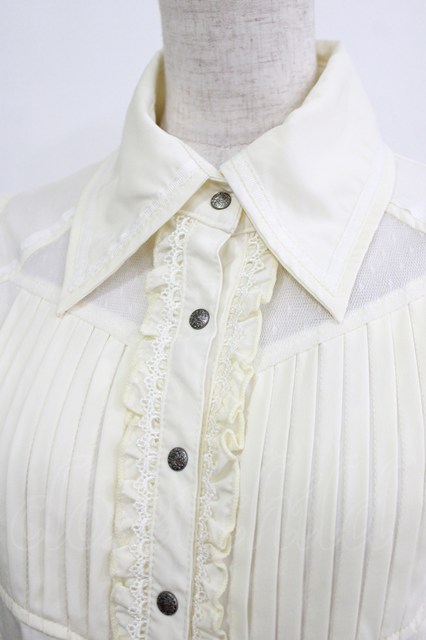 Ozz oneste / 薔薇刺繍タックフリルブラウス アイボリー H-25-12-24-1055-OO-BL-KB-ZH