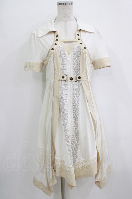 Ozz oneste / 薔薇刺繍レイヤード風ワンピース アイボリー H-25-12-24-1010-OO-OP-KB-ZH [2100030000078364-H-25-12-24-1010-OO-OP-KB-ZH]