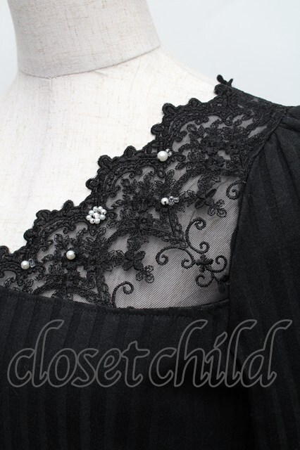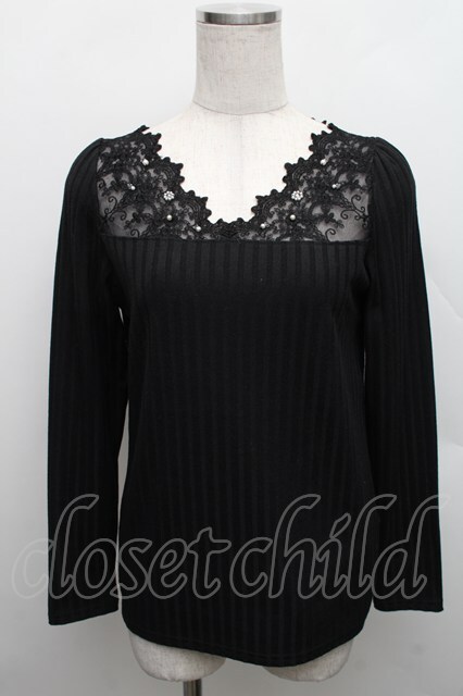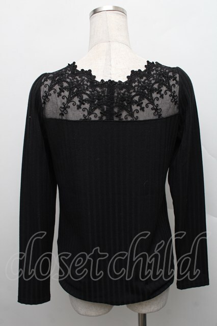 axes femme / レース切替カットソー 黒 S-25-12-18-020-AX-BL-HR-ZS