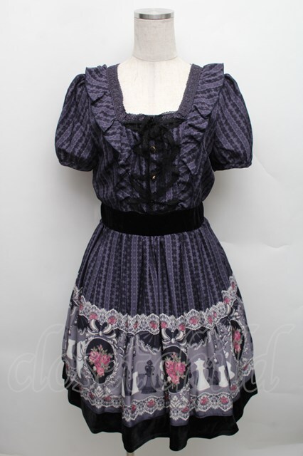 axes femme / チェス柄ストライプレースワンピース 紺 S-25-12-18-027-AX-OP-HR-ZS