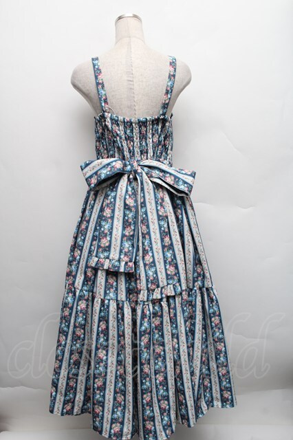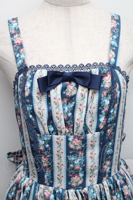 axes femme kawaii / ストライプローズ柄ジャンスカ M ブルー S-25-12-18-045-AX-OP-AS-ZS