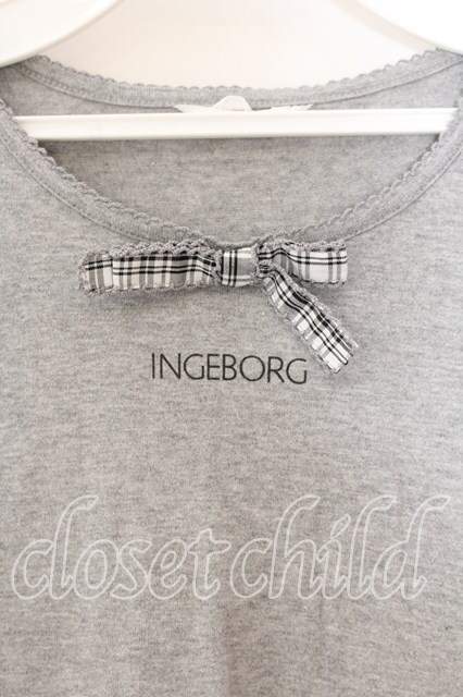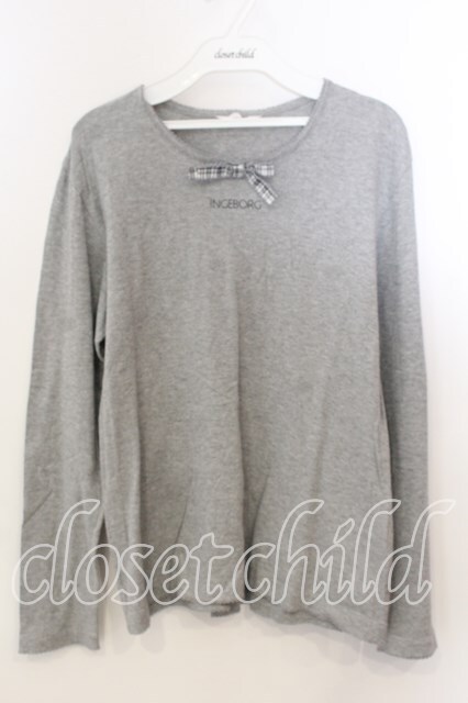 INGEBORG / チェックリボン使いカットソー M グレー O-25-12-19-054-LO-TO-OW-OS